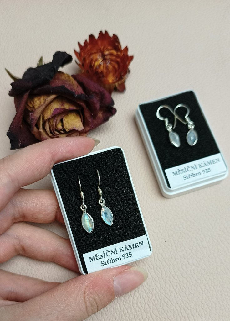 Elegantní náušnice z broušeného měsíčního kamene ve stříbře 925/1000 s označením ryzosti. Doporučujeme sundat před koupáním, sportováním nebo při návštěvě sauny. Měsíční kámen (skupina živců) existuje v několika barevných… Více informací